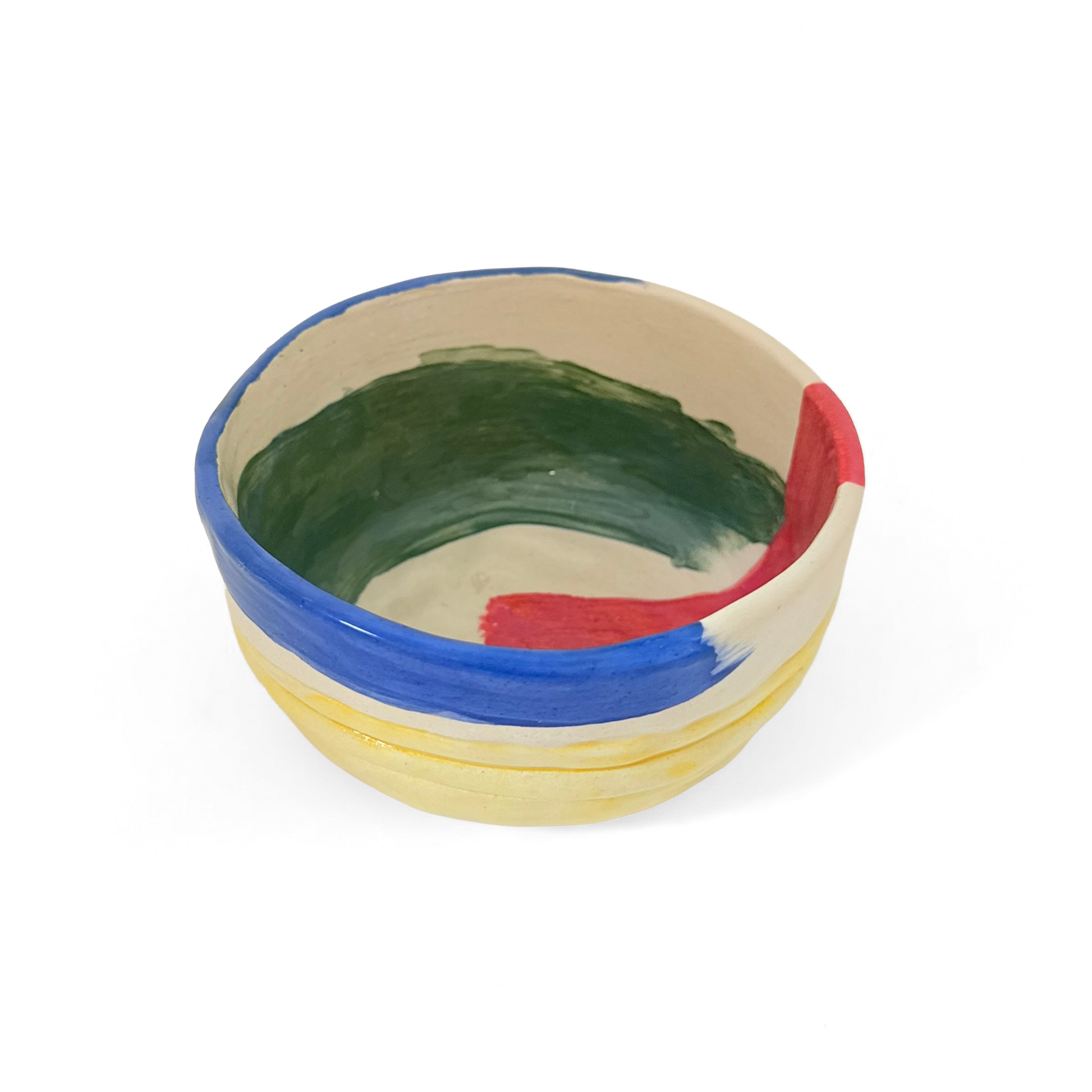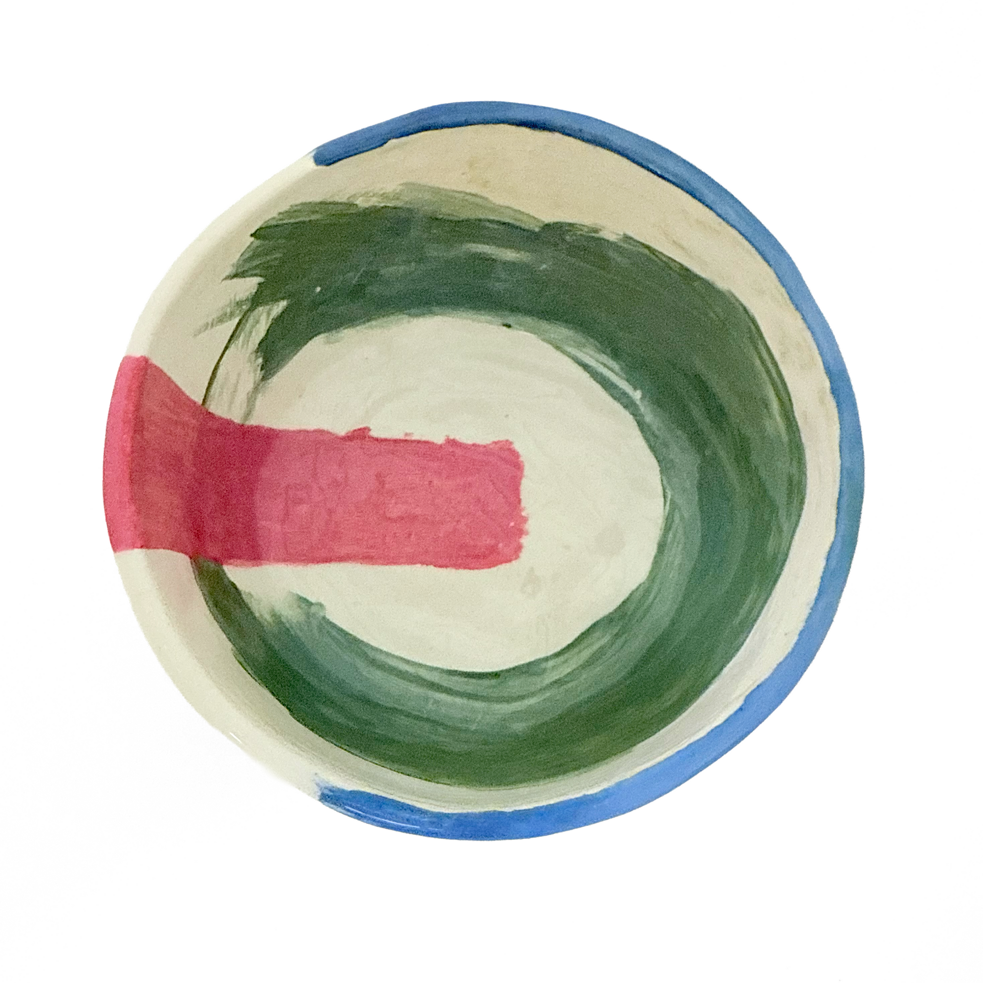 El cuenco Algadefe está concebido para poder ser usado tanto como objeto decorativo como para su uso culinario. El colorido contraste de formas curvas y rectas y la crudeza de los trazos de brocha del esmaltado transmiten vigor y energía en esta pieza que se va a convertir en la favorita allá donde la uses.