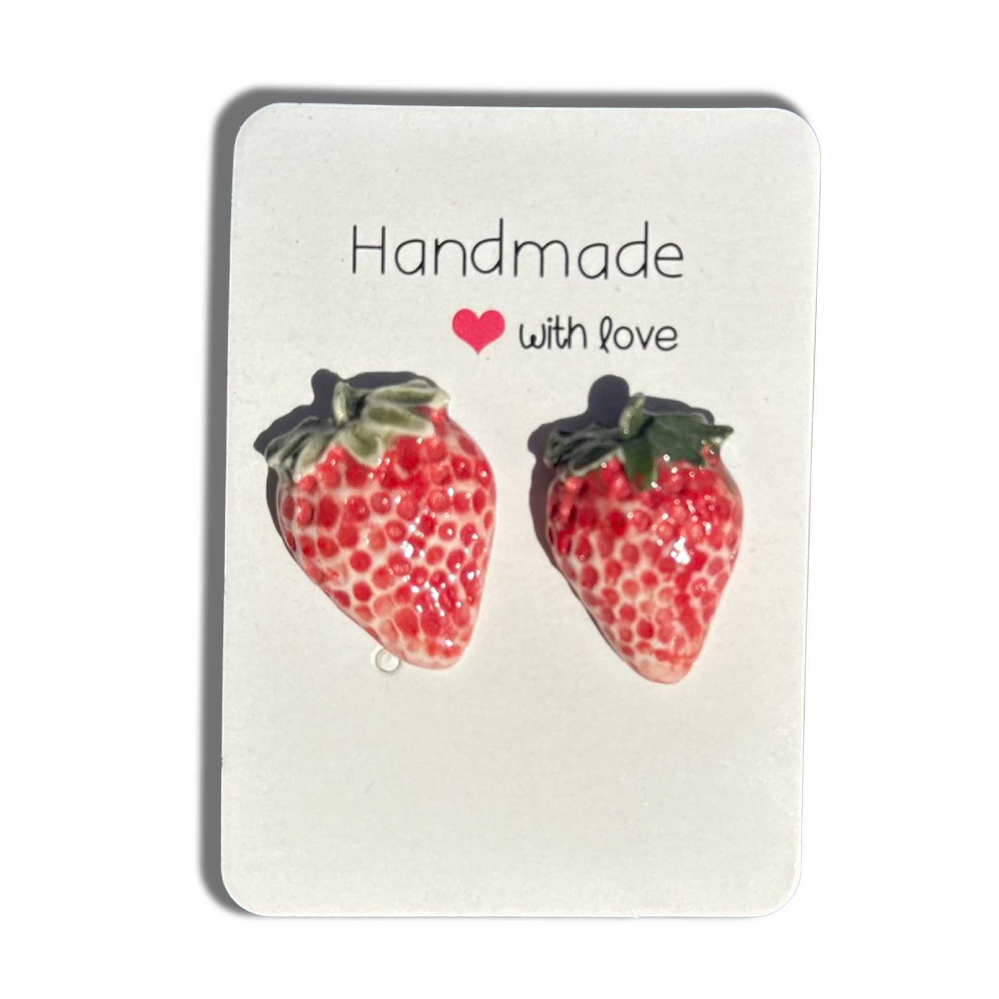 cLos pendientes Fresa Silvestre, son como llevar el verano contigo todo el año. están elaborados en cerámica con esmalte rojo y verde musgo. Su forma ingenua y alegre aporta luz y alegría incluso en el día más gris. Prepárate para recibir sonrisas con estos pendientes montados en acero que incluyen un cierre de seguridad de silicona.