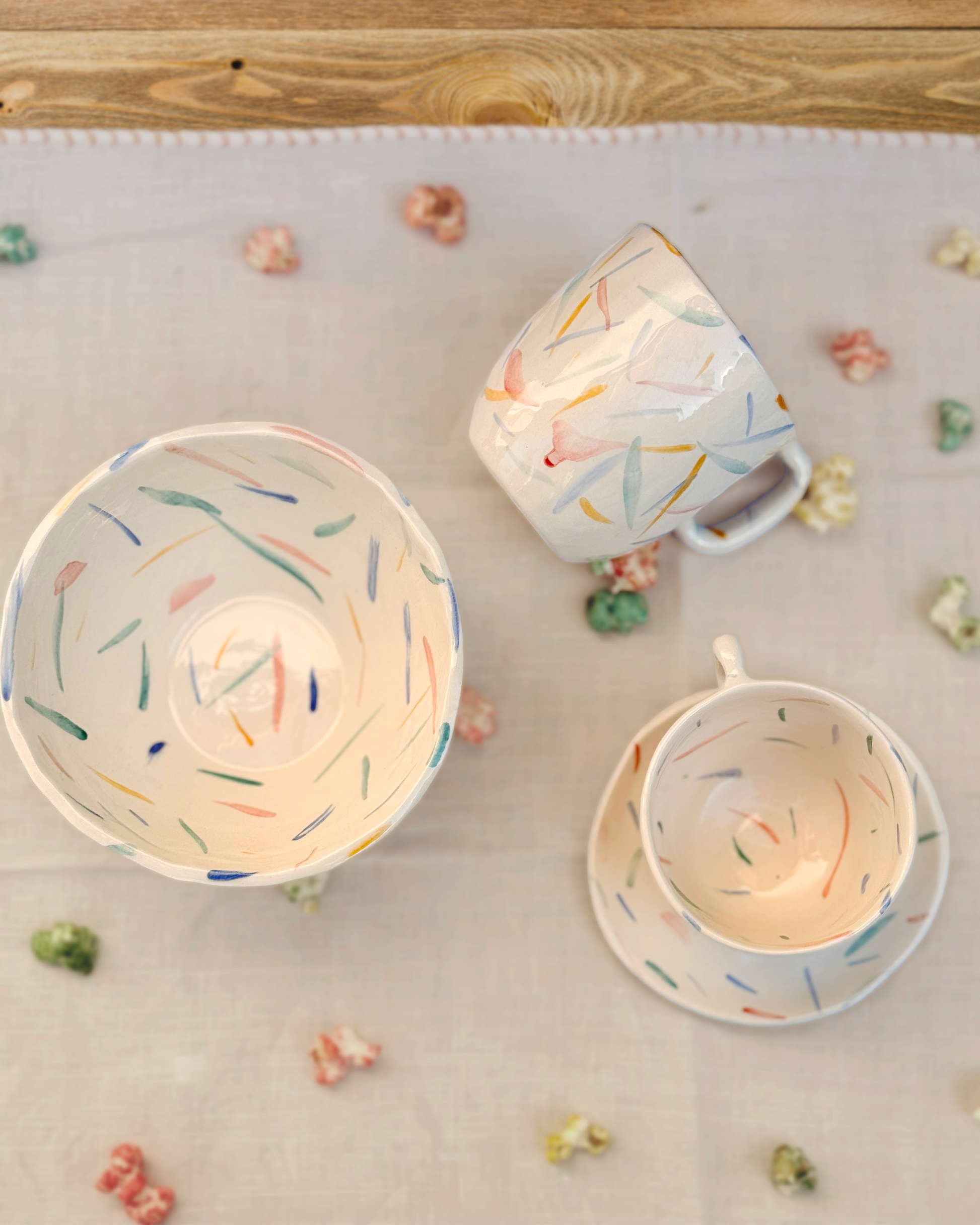 Puedes completar el servicio con la taza alta de desayuno y el bol. Elegancia alegre en tu mesa.