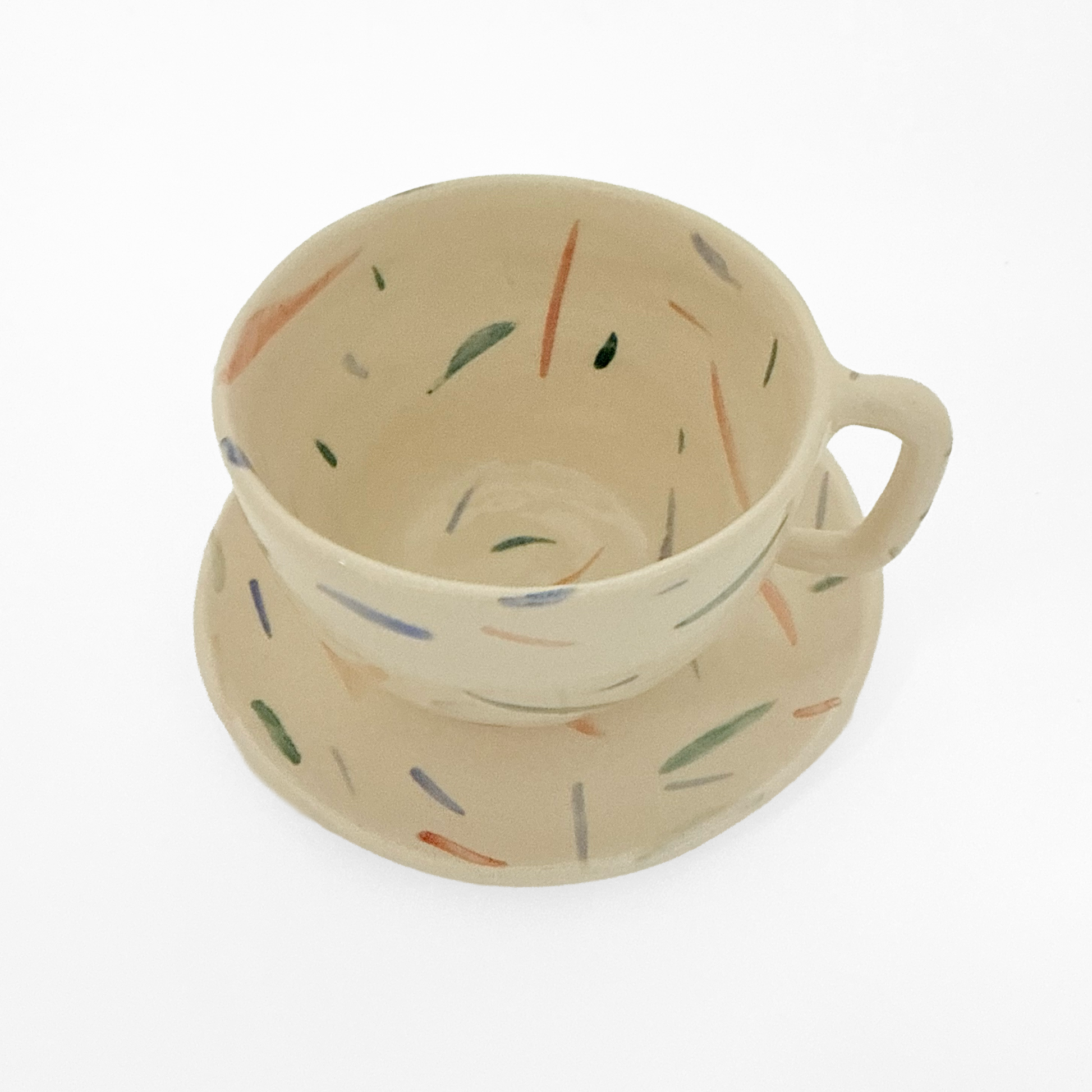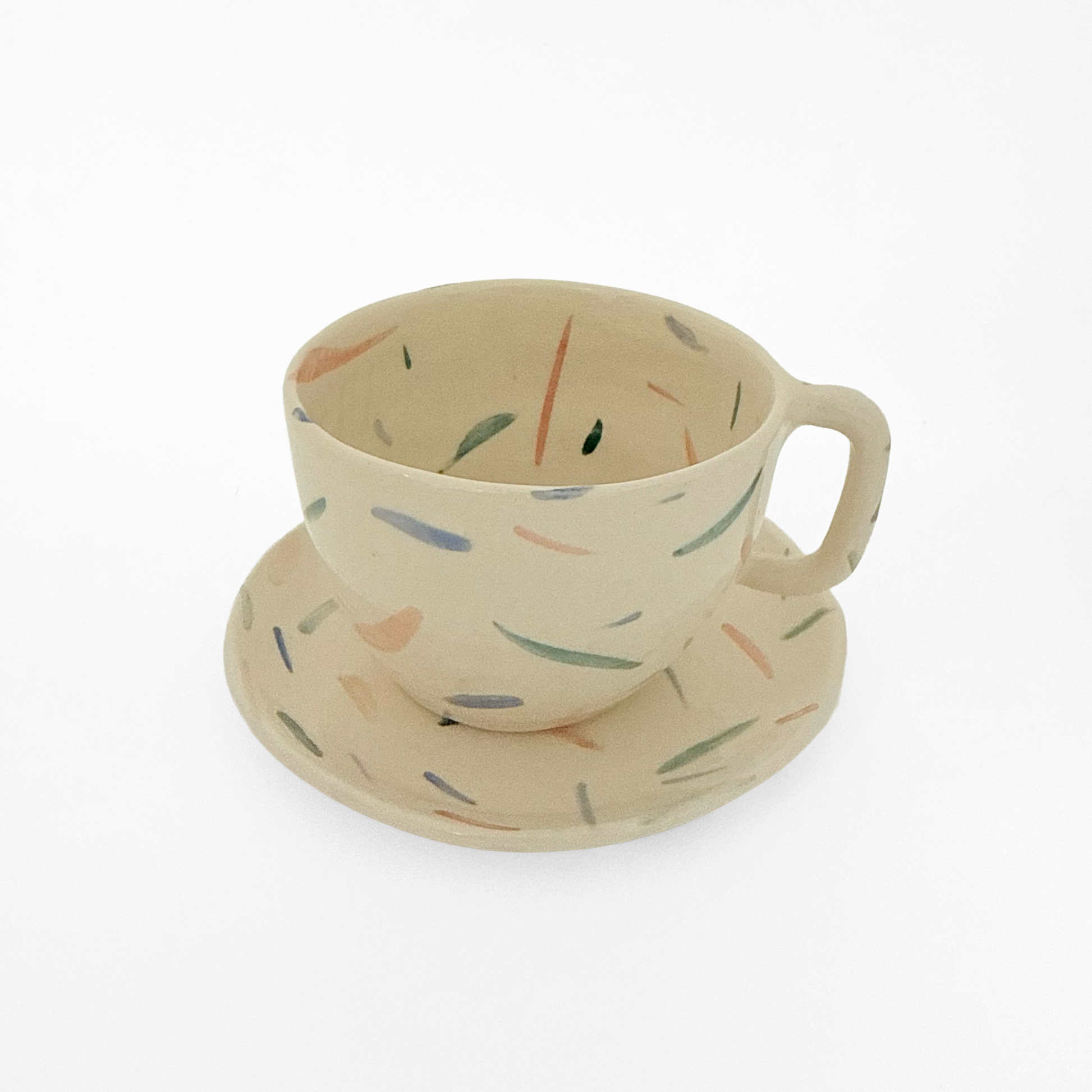 El precioso tono del gress en combinación con las sutiles pinceladas de esmalte crean una pieza de gran delicadeza, que transmite alegría y calma en cada sorbo.